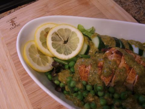 Dinner: Another salad with baked chicken (spiced with chipotle) and the most amazing dressing ever: